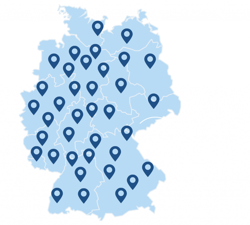 Mit über 120 Standorten in Deutschland, Österreich und der Schweiz gibt es Arbeitsmöglichkeiten in vielen Regionen. Größere Standorte bieten die Möglichkeit, im Team vor Ort zu arbeiten.